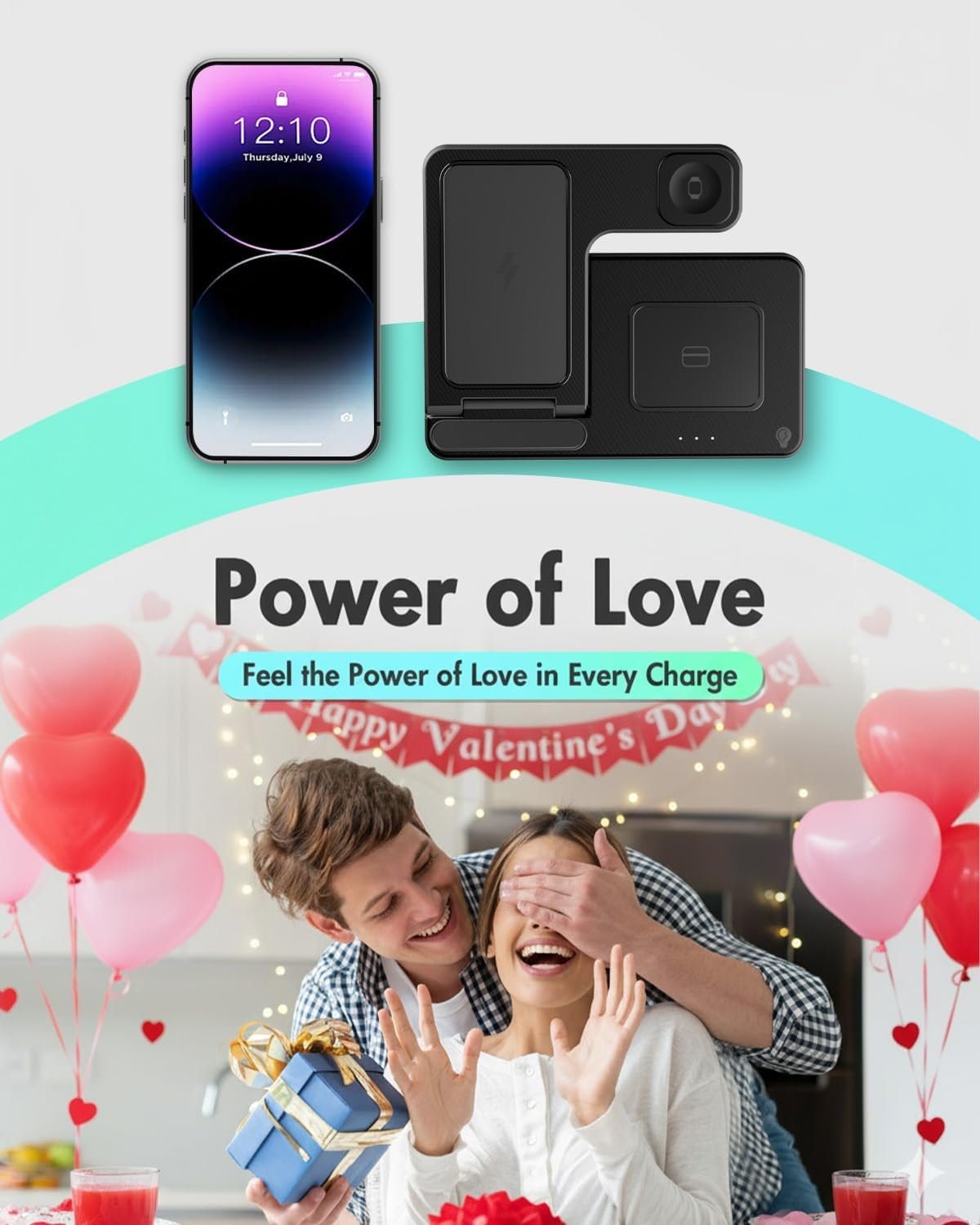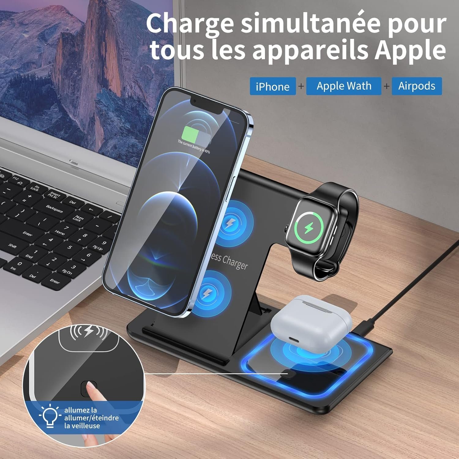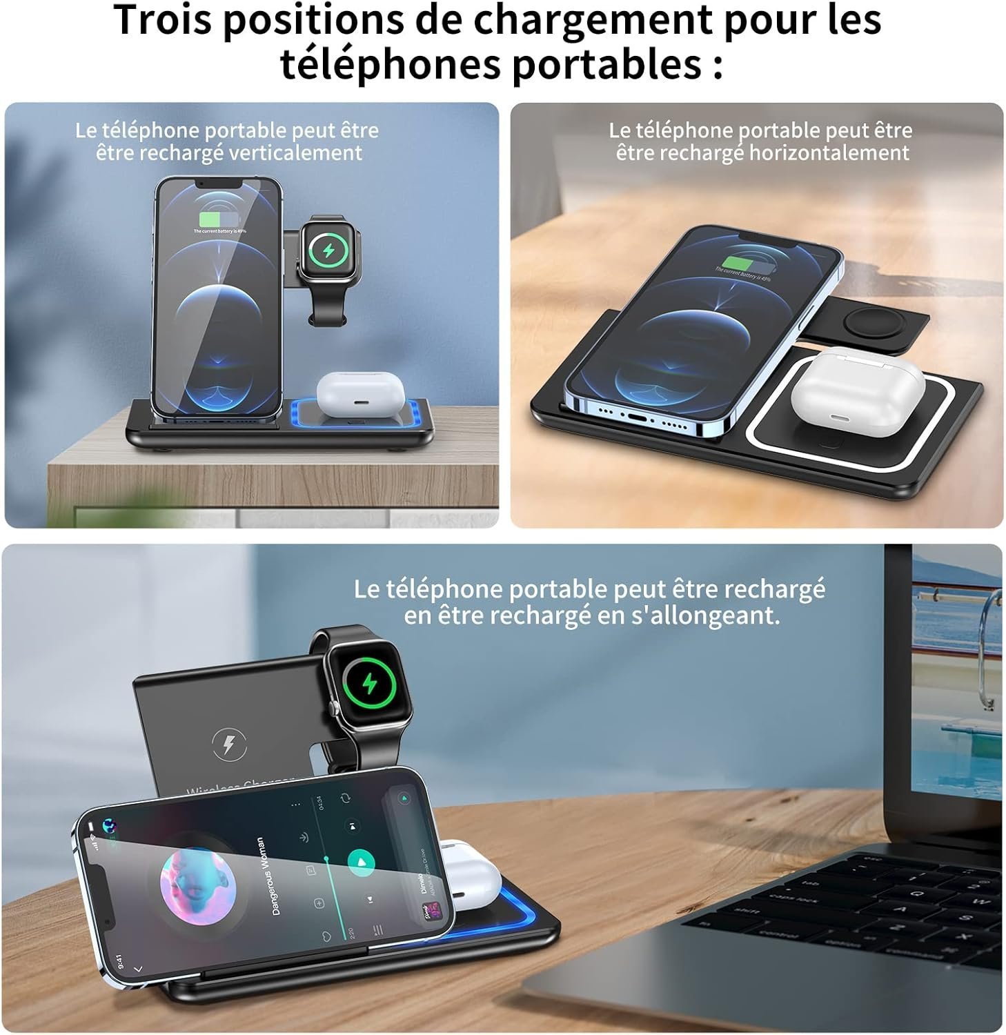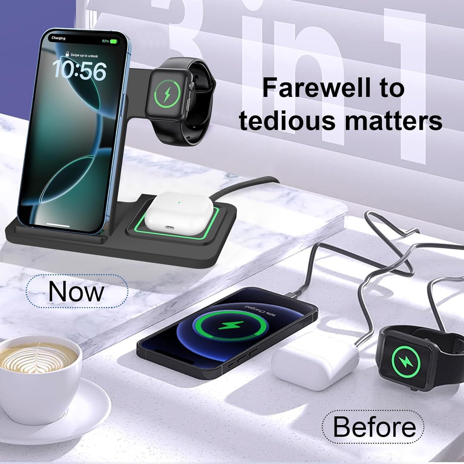3-in-1 wireless charging station β Fast 15W Charger for Phone, Watch & Earbuds